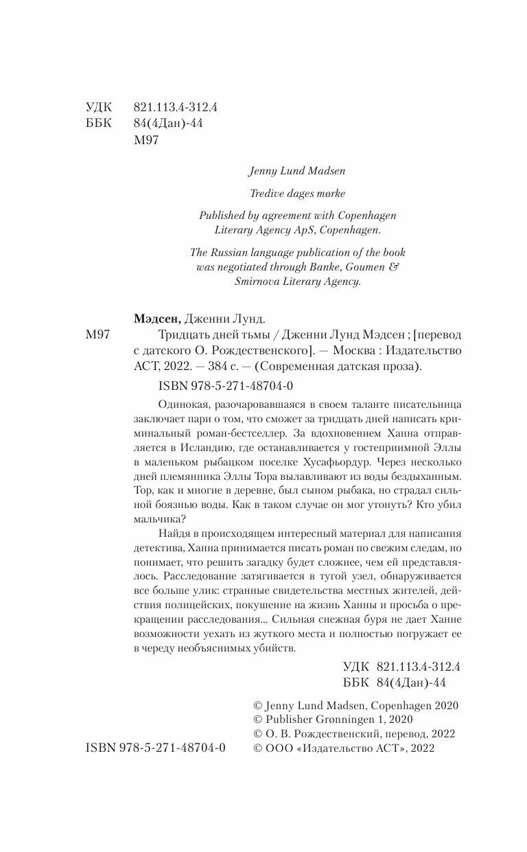 Книга: Тридцать дней тьмы (Мэдсен Дженни Лунд); ИЗДАТЕЛЬСТВО "АСТ", 2023