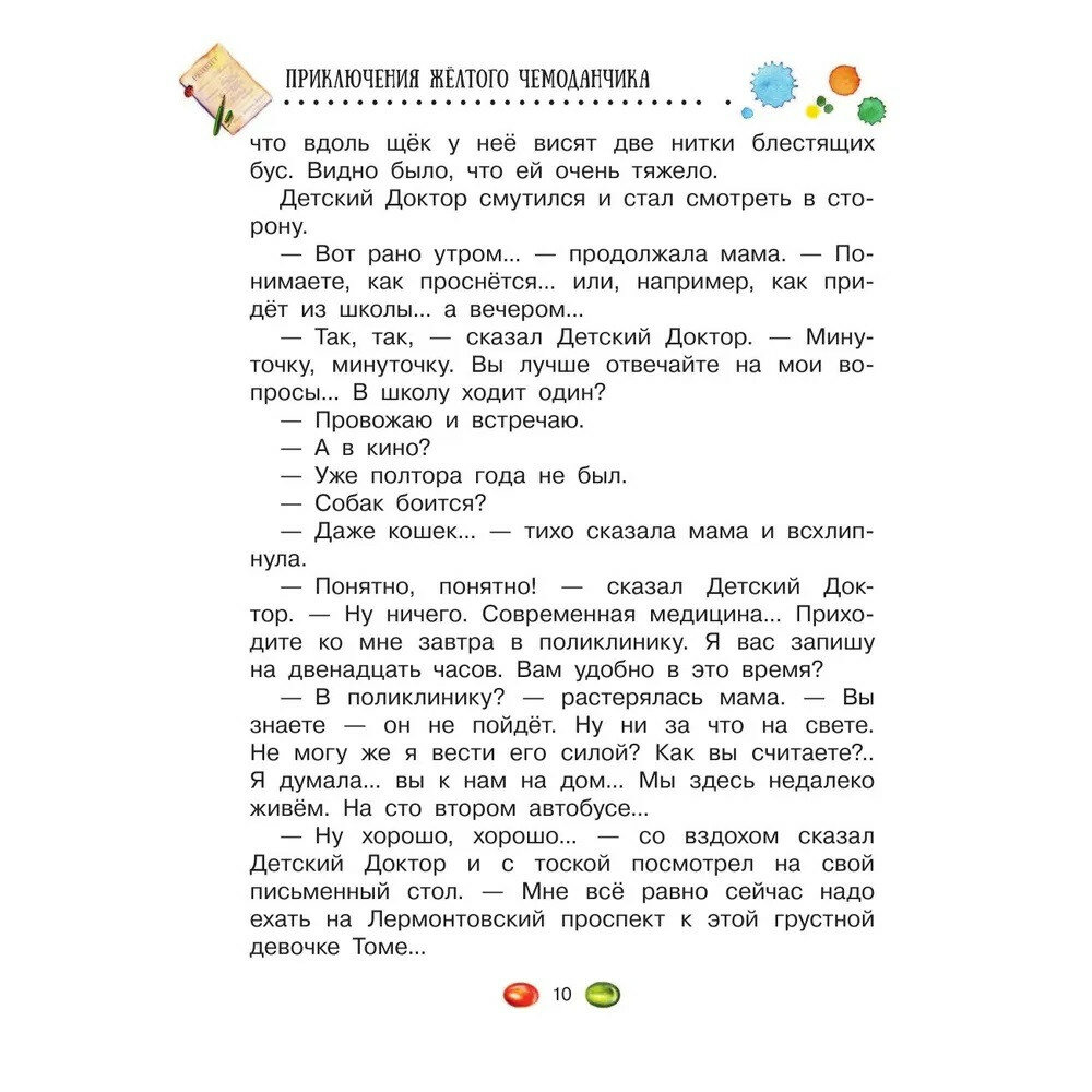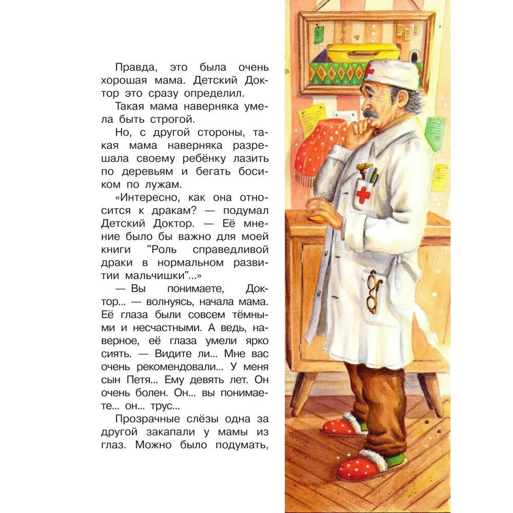 Не знаю, как так получилось, что в детстве эта книга прошла мимо меня. Наткнулась на нее в магазине ЧГ , и иллюстрации просто покорили. Все, кто жил в советские 80-е,определенно почувствуют удивительно теплый налет того времени. Книга буквально пропитана духом детства, озорства и приключений. В самом сюжете, тексте, картинках всё кажется очень родным) Описано время, когда доктора были бескорыстны и заботливы, бросались по вызову к пациенту в любое время дня и ночи. Да и все герои очень самоотверженные и душевные🤗Удивительная история, в которой чемоданчик, словно живой персонаж путешествует по городу, смелость можно обрести , съев конфету, а с другом получается за 1 день побывать в цирке и на аэродроме, спастись от хулиганов и почувствовать самую теплую любовь родителей)