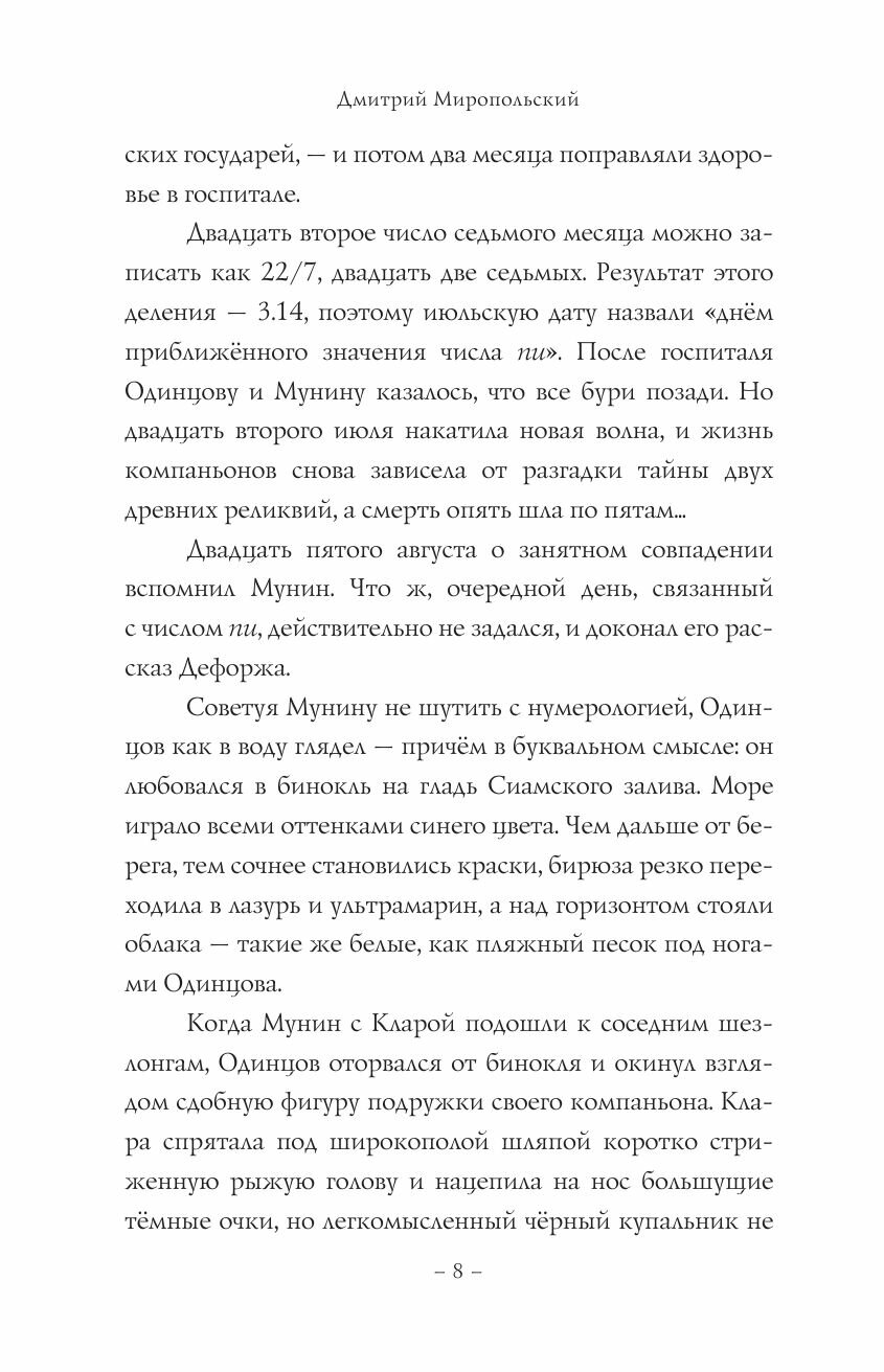 Главные герои — отставной спецназовец, молодой историк и красавица-математик — вынуждены распутывать связи между последними открытиями Нобелевских лауреатов, давними подвигами французского Иностранного легиона, странными событиями в Европе, пиратами в Азии, кровавой бойней в Африке… Троица снова и снова рискует своими жизнями, чтобы помешать наступлению всеобщего хаоса — и открыть человечеству путь к бессмертию.