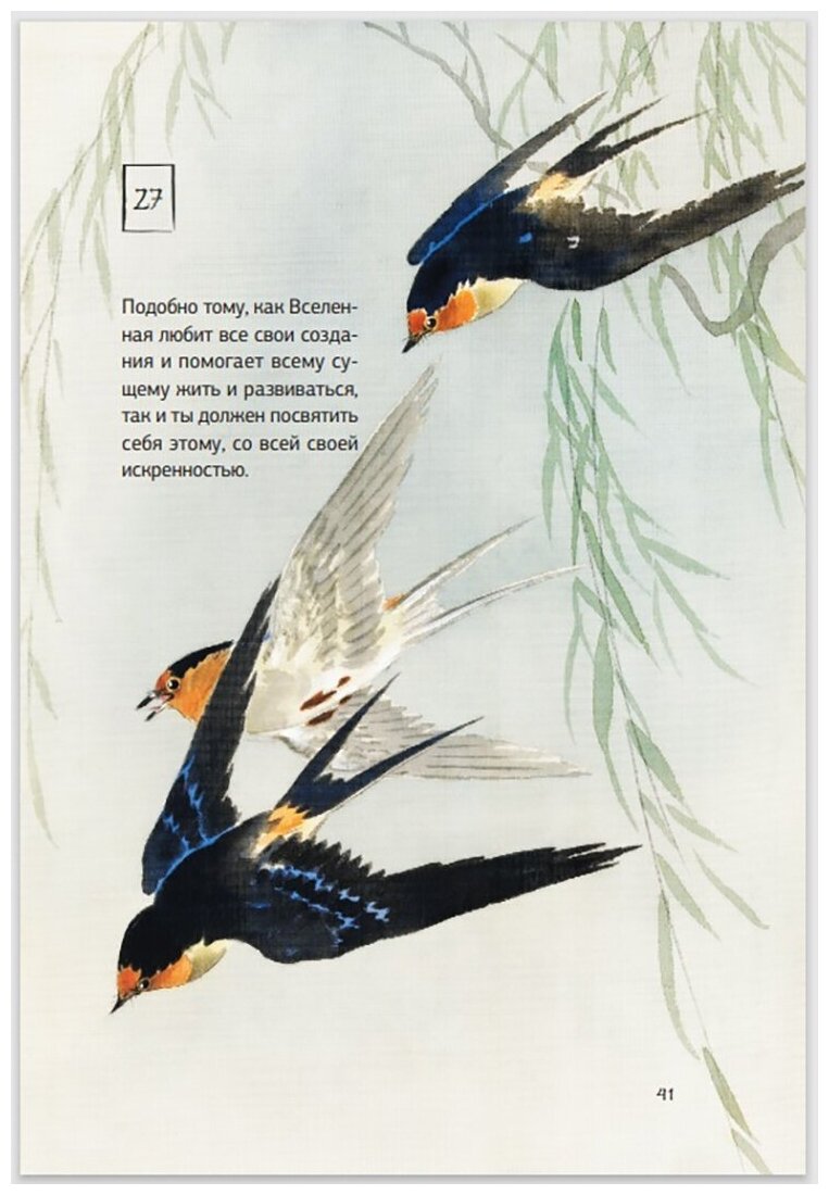 Великолепные гравюры японского художника Охары Косона тонко и многогранно подчеркивают глубину и мудрость, которой наполнена книга.