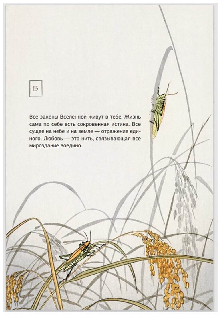 Я поклонник Азии, их философии и культуры. Понемногу читаю и изучаю разные книги поэтому не смогла пройти мимо этой. Она привлекла меня своим оформлением. Она нереально красиво и качественно выполнена. Книга представляет из себя яркие иллюстрации, выдержанные в азиатском сэттинге и небольшие цитаты - мудрые мысли духовного наставника Аму Мом. Довольно необычно и интересно. Мысли глубокие, исцеляющие. Я практикую медитации, как дополнение книга на каждый день мне очень понравилась. Советую тем, кто хочет развиваться духовно.