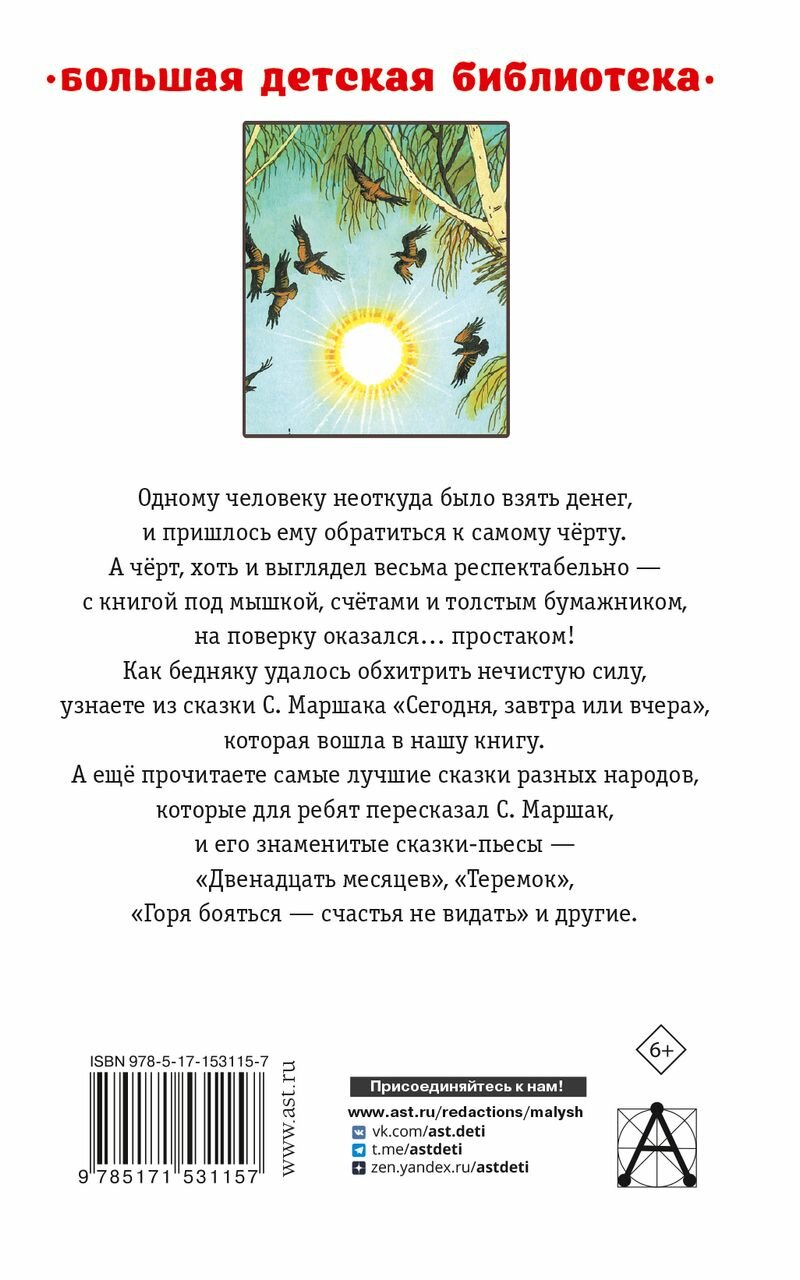 На сегодняшний день товар «Книга: Сегодня завтра или вчера. Сказки (Маршак Самуил Яковлевич); АСТ, 2023» можно купить с кешбеком в 4 магазинах: book24, Буквоед, Яндекс.Маркет, Читай-город