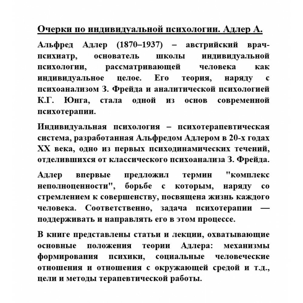 На сегодняшний день товар «Книга: Очерки по индивидуальной психологии (Альфред Адлер); АСТ, Neoclassic, 2023» можно купить с кешбеком в 4 магазинах: book24, Буквоед, Читай-город, Onliner BY