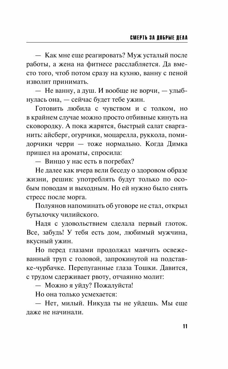 Книга \"Смерть за добрые дела\" - это захватывающий триллер, который не отпускает читателя до самого конца. Автор умело создает напряжение и держит его на протяжении всей книги, делая каждую главу увлекательной и интересной. Сюжет книги описывает жизнь главного героя, который оказывается втянутым в опасную игру, где на кону стоит его жизнь. Сюжет наполнен неожиданными поворотами и сюрпризами, которые не дадут вам заскучать.