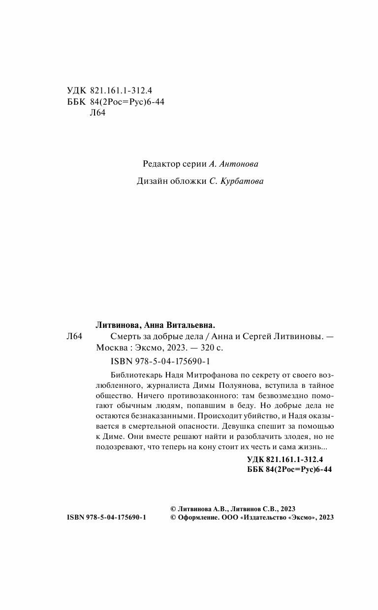 Книга: Смерть за добрые дела (Литвиновы Анна и Сергей, Литвинов Сергей Витальевич); ООО "Издательство "Эксмо", 2023