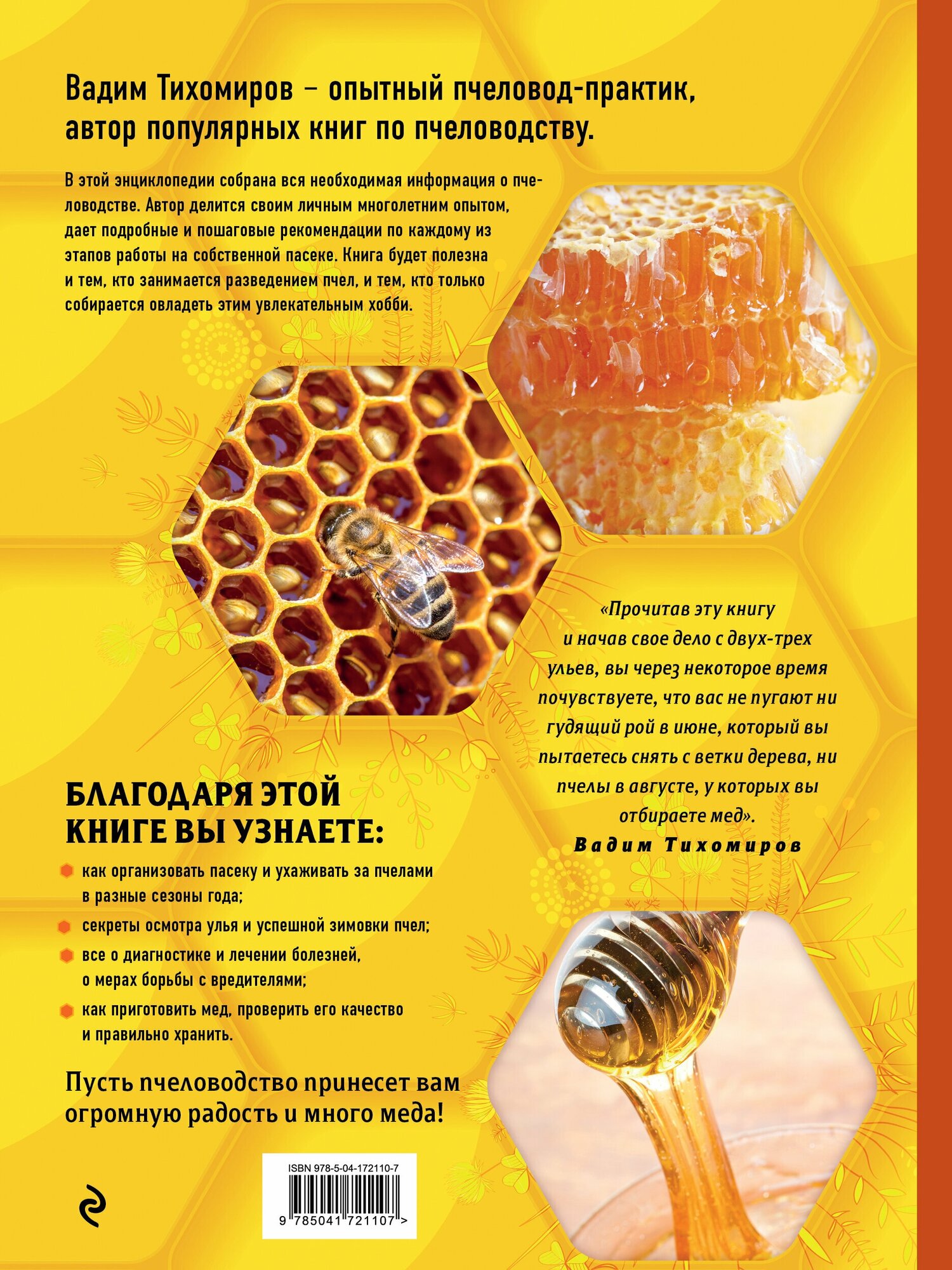 "Прочитав эту книгу и начав свое дело с двух-трех ульев, вы через некоторое время почувствуете, что вас не пугают ни гудящий рой в июне, который вы пытаетесь снять с ветки дерева, ни пчелы в августе, у которых вы отбираете мед". - Вадим Тихомиров