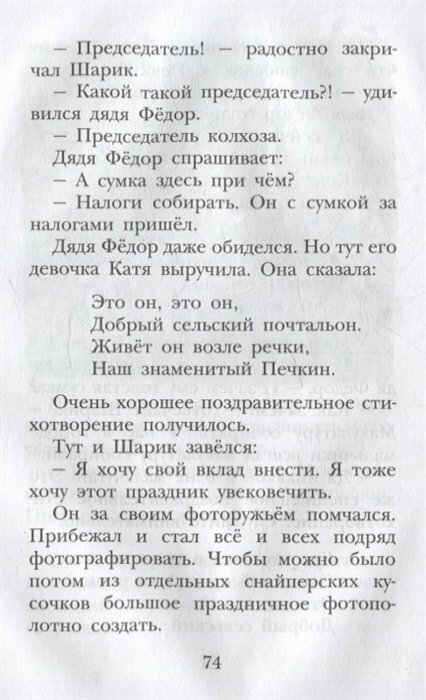 Как мне нравятся книги по Простоквашино, дядю Федора, Пса и Кота! Вот и схватила данную книгу, думая, что это очередные веселые приключения друзей. Книга огорчила и разочаровала меня, написано скучно, безэмоционально и нудно. Самая худшая для меня книга из серии автора. Неприятный сюрприз, поэтому не рекомендую и ставлю оценку 2.