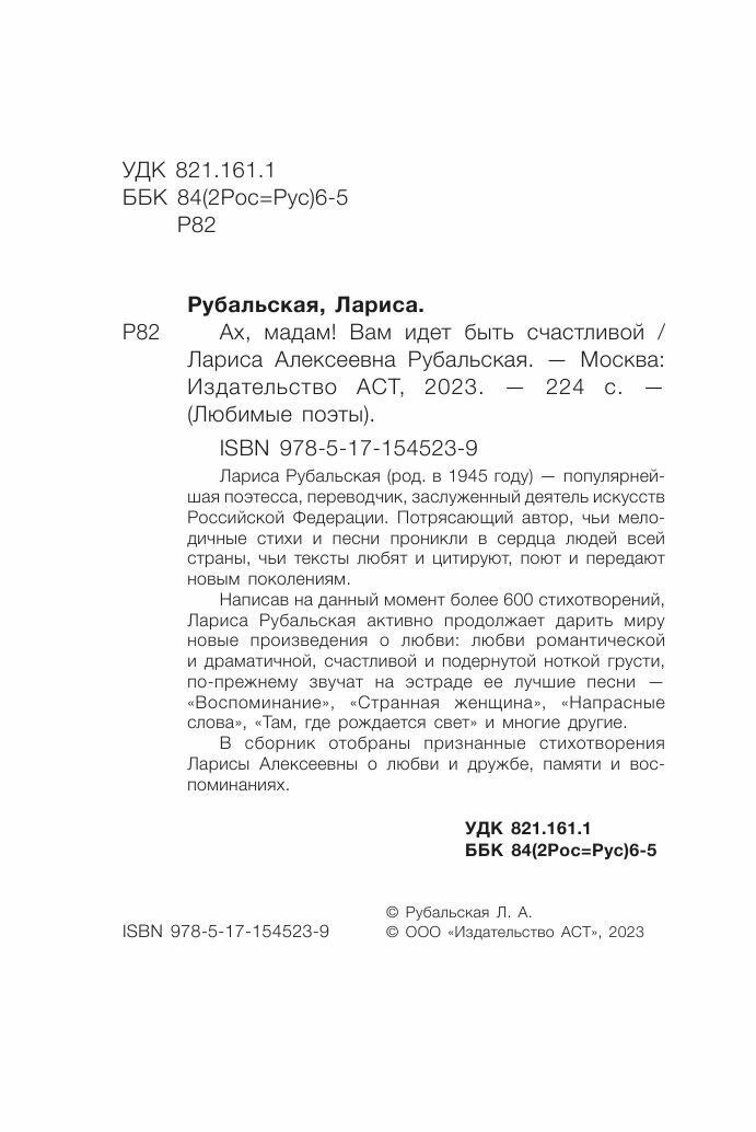 Ах мадам! Вам идёт быть счастливой (Рубальская Лариса Алексеевна); ИЗДАТЕЛЬСТВО "АСТ", 2023