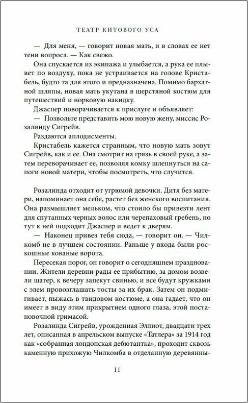 \"Театр китового уса\" - новинка с заманчивой аннотацией и обворожительной обложкой. Нам обещают уютный роман взросление. Звучит очень любопытно. И действительно где-то первая четверть романа уютная и атмосферная. Мир Кристабель меняется, когда отец привозит в дом новую жену. Девочка неординарная особа, читать в начале было интересно о ней и её отце. А дальше, после определенных событий в книге, если честно, сюжет как-то сливается. У Кристабель появляется сестра, потом брат (на самом деле двоюродный, но как родной в итоге). Герои взрослеют. И не скажу, что здорово прописаны перепетии их жизни. Из атмосферного сюжет становится обычным, каких на самом деле не мало. Случается Вторая мировая война. Герои работают на разведку. Драматичные события конечно же будут, но они не волнуют душу. Переживаний за персонажей не испытывала.