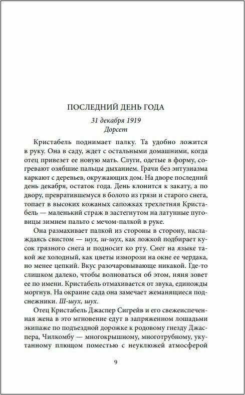 Хотелось чего-то уютного, книги, от которой невозможно оторваться. В итоге сначала и правда читала с интересом. Усадьба, семья, необычная девочка. Но после определенных событий весь флёр как будто спал. И получилась какая-то обычная книга. Девочка Кристабель стала обычной, хотя автор и стремится нам внушить другое. Её брат и сестра тоже не вызывают отклика в душе.