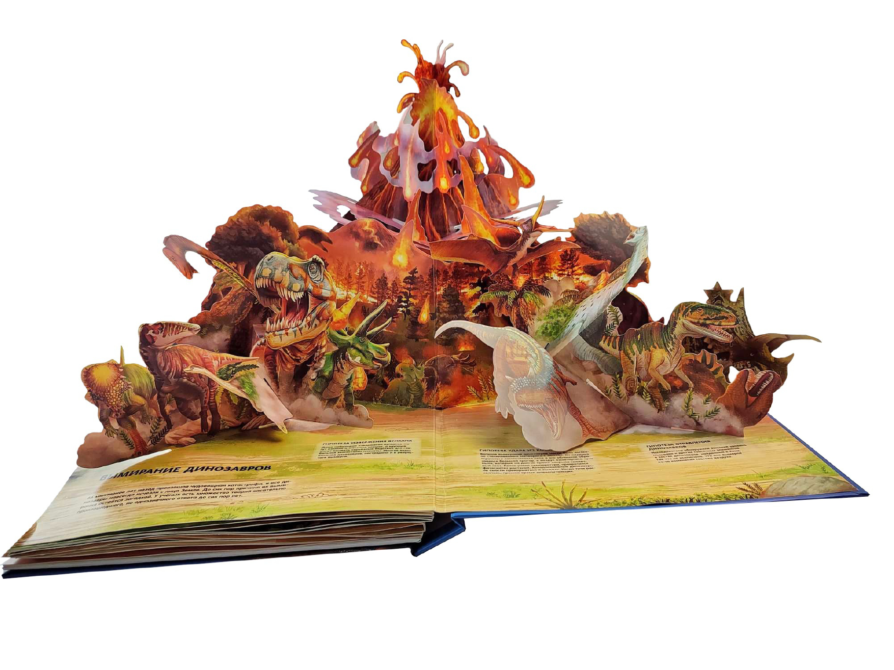 Очень красивое оформление. Открыв книгу, словно попадаешь во время, когда жили динозавры! Объемные 3D иллюстрации, Динозавры словно оживают на страницах книги! Читая о них, ребёнок может видеть их во весь рост.