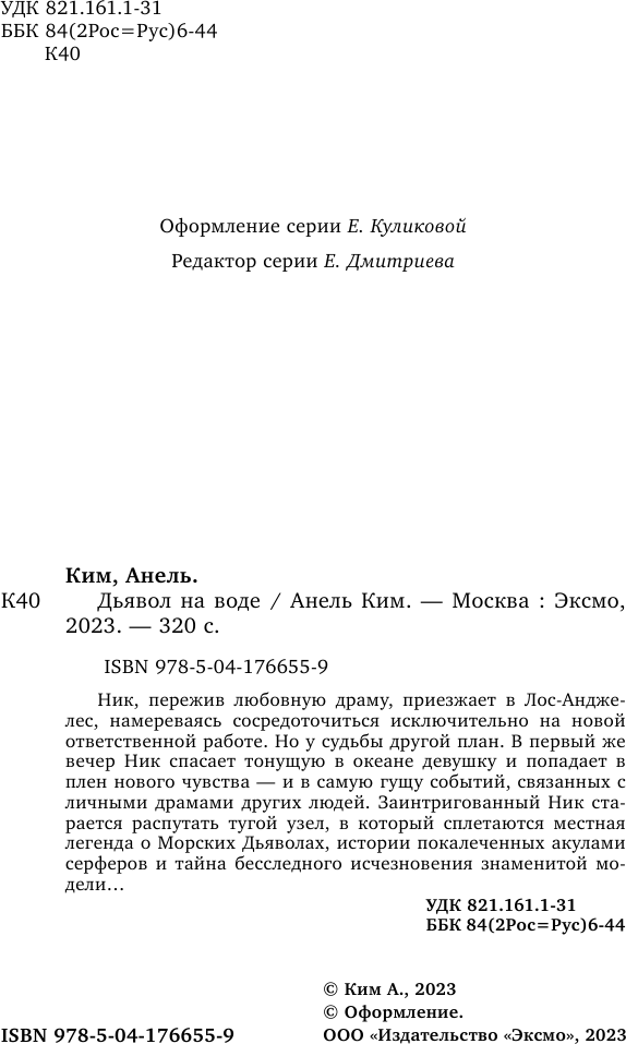 Книга: Дьявол на воде (Анель Ким); Эксмо, Редакция 1, 2023