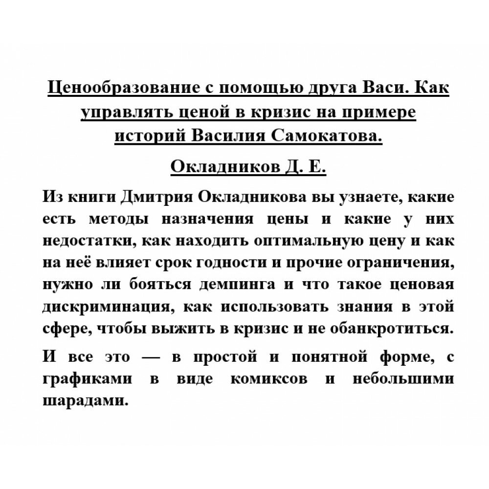 Ценообразование с помощью друга Васи. Как управлять ценой в кризис на примере историй Василия Самокатова (Д. Е. Окладников); Издательство АСТ, 2023