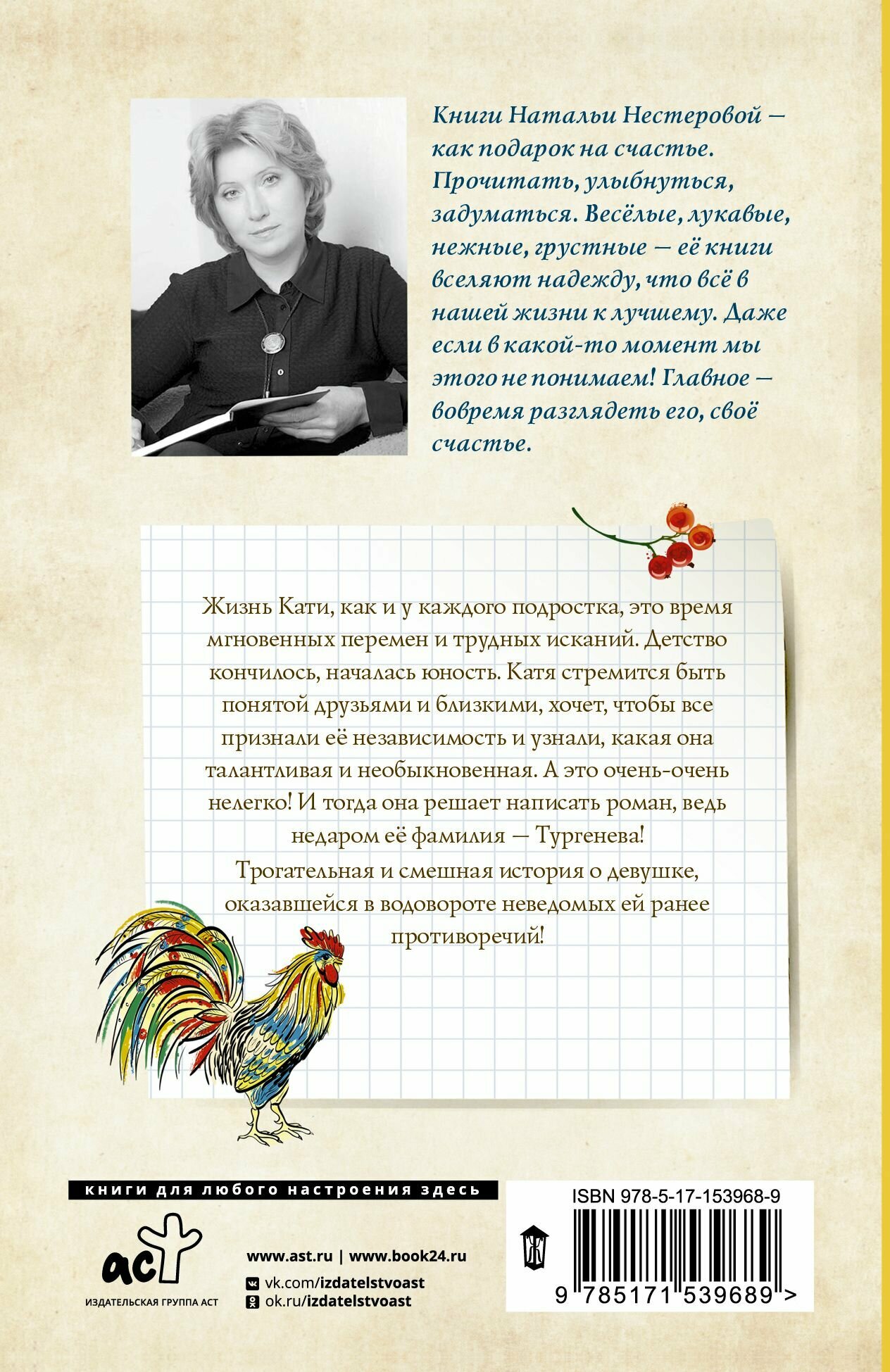 Обычно, читаю произведения Натальи Нестеровой с удовольствием и интересом, но данный сюжет меня не тронул. В процессе чтения не покидало ощущение сумбурности изложения. Автор подымает подростковую проблематику, но я так и не уяснила четко, что же хотел сказать, донести до читателей писатель, каков его глобальный посыл. Скучно, хаотично, не душевно.