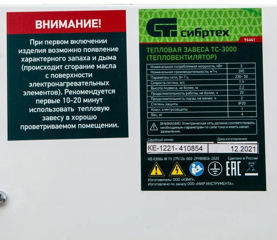 Электрическая тепловая завеса СИБРТЕХ ТС-3000