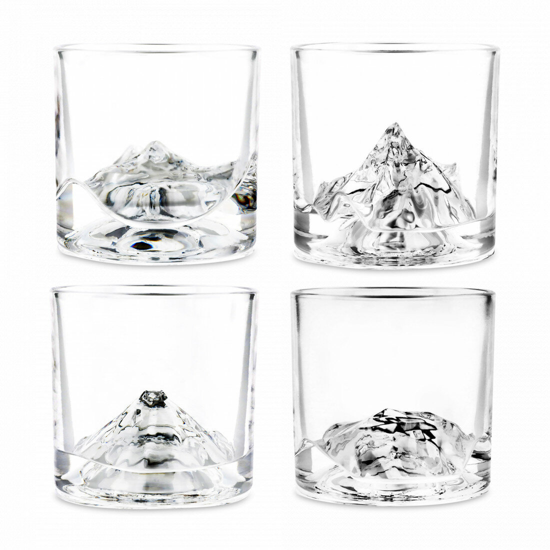 Набор бокалов для виски Liiton “The Peaks” состоит из четырех тумблеров объемом 230-280 мл. Внутри каждого бокала имеется рельеф, который является миниатюрной копией четырех знаменитых горных вершин: Денали - “Большая гора”, высочайшая гора Северной Америки. Монблан - “Белая гора”, возвышается над озером Леман, самая высокая точка Альп. Фудзия́ма - священная японская гора с заснеженной вершиной и действующий вулкан. К2 известна как «Дикая гора», вторая по высоте горная вершина земли. Трехмерная модель горы внутри бокала обеспечивает активную аэрацию виски. При плавном вращении напитка в бокале он обогащается кислородом, «дышит» и лучше раскрывает все оттенки вкуса и аромата.Каждый бокал изготовлен ручным прессованием из высококачественного не содержащего свинец хрустального стекла. Тумблеры приятно держать в руке, ощущая их вес и качество. Утолщенные стенки и дно являются практически небьющимися и поддерживают нужную температуру напитка. Бокалы подойдут не только для виски, но и для приготовления и употребления любых алкогольных коктейлей, а также других алкогольных напитков, таких как водка, коньяк, текила или джин. Изделия предлагаются в красивой подарочной упаковке. Изделия можно мыть в посудомоечной машине.