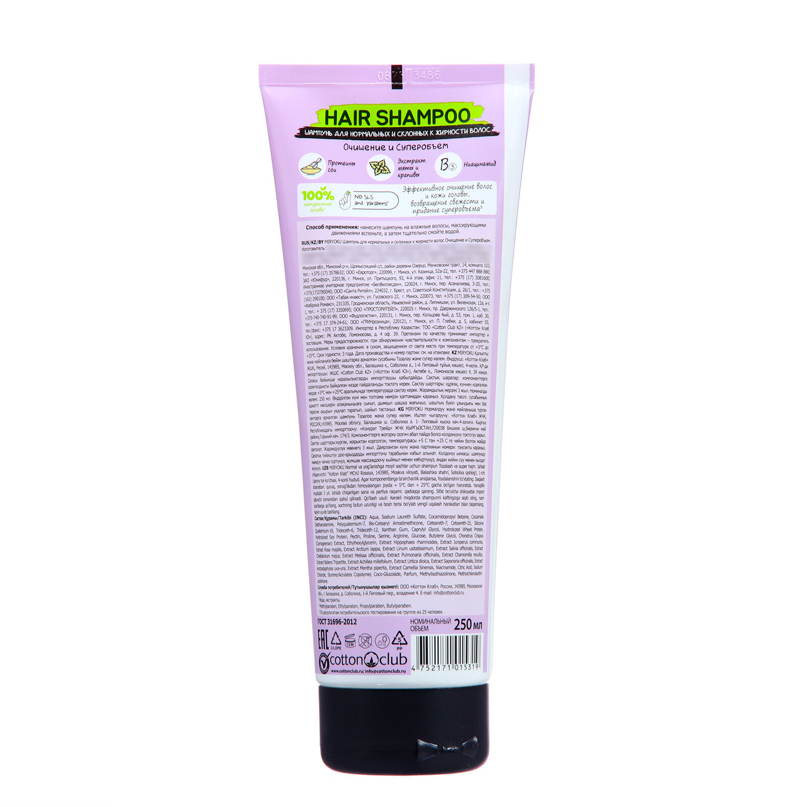 Шампунь для нормальных и склонных к жирности волос "Очищение и суперобъем" 250 мл Miryoku (ЭХ99989437569)