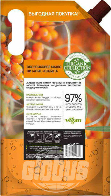 Облепиховое мыло "Питание и забота" с экстрактом имбиря и маслом облепихи 1000 мл Organic collection (ЭХ99989437552)