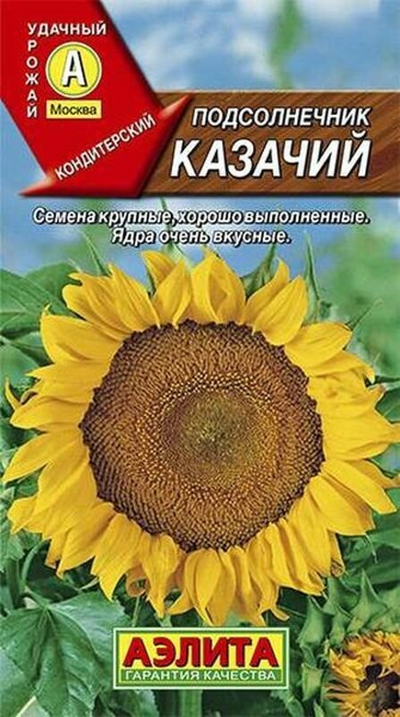 **Семена Подсолнечник «Казачий»** относятся к среднеспелым сортам, является отличным медоносом. Урожай собирают через 88-95 суток, если отсчитывать от появления полных всходов. В высоту растение достигает до 2,2 м. Корзинки хорошо сформированы, обладают диаметром до 30 см. 1000 семян весят до 0,16 кг. Используется в кулинарии.