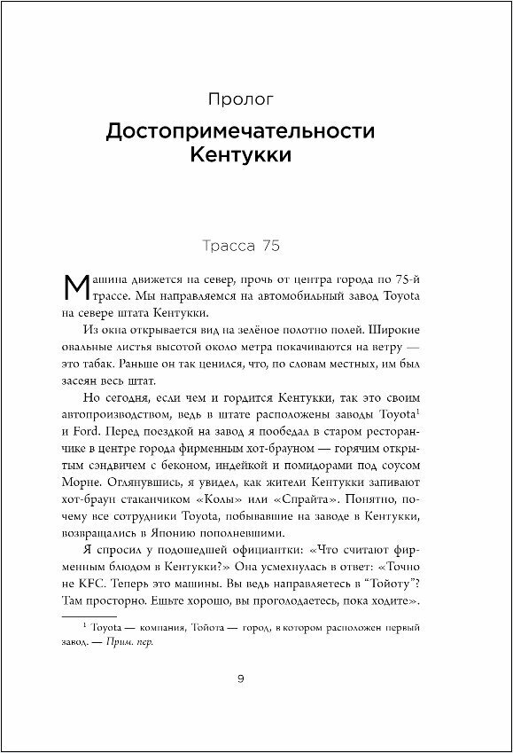 Toyota начала историю своего восхождения в момент, когда Япония приходила в себя после поражения во Второй мировой войне. На фоне оккупации и полной разрухи руководство концерна создавало производственную систему, которая обошла по своей эффективности и конвейер Генри Форда, и другие аналогичные подходы. Эта книга — настоящая бизнес-сага, написанная выдающимся японским журналистом. В ней он показывает скрытую от западной публики сторону успеха автогиганта Страны Восходящего Солнца. Анализирует причины его успеха через призму культурно-исторических событий того времени, а заодно дает надежду современному бизнесу, вынужденному выживать в условиях экономической стагнации.