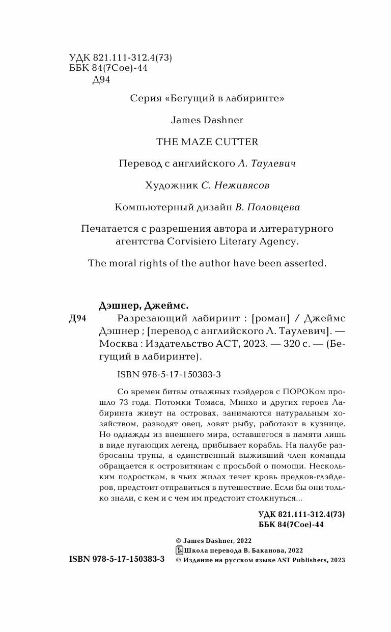 Книга: Разрезающий лабиринт (Джеймс Дэшнер); Издательство АСТ, 2022