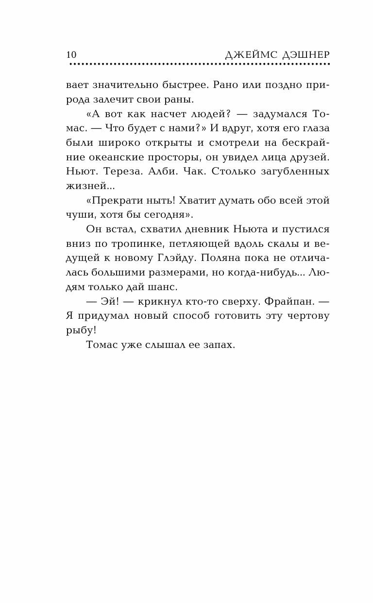 Казалось, что ранее в трилогии была поставлена точка. Что можно ещё добавить к уже завершённой истории? Джеймс Дэшнер удивляет, создавая увлекательный, интересный и динамичный сюжет, достойно продолжающий историю «Бегущего в лабиринте». -