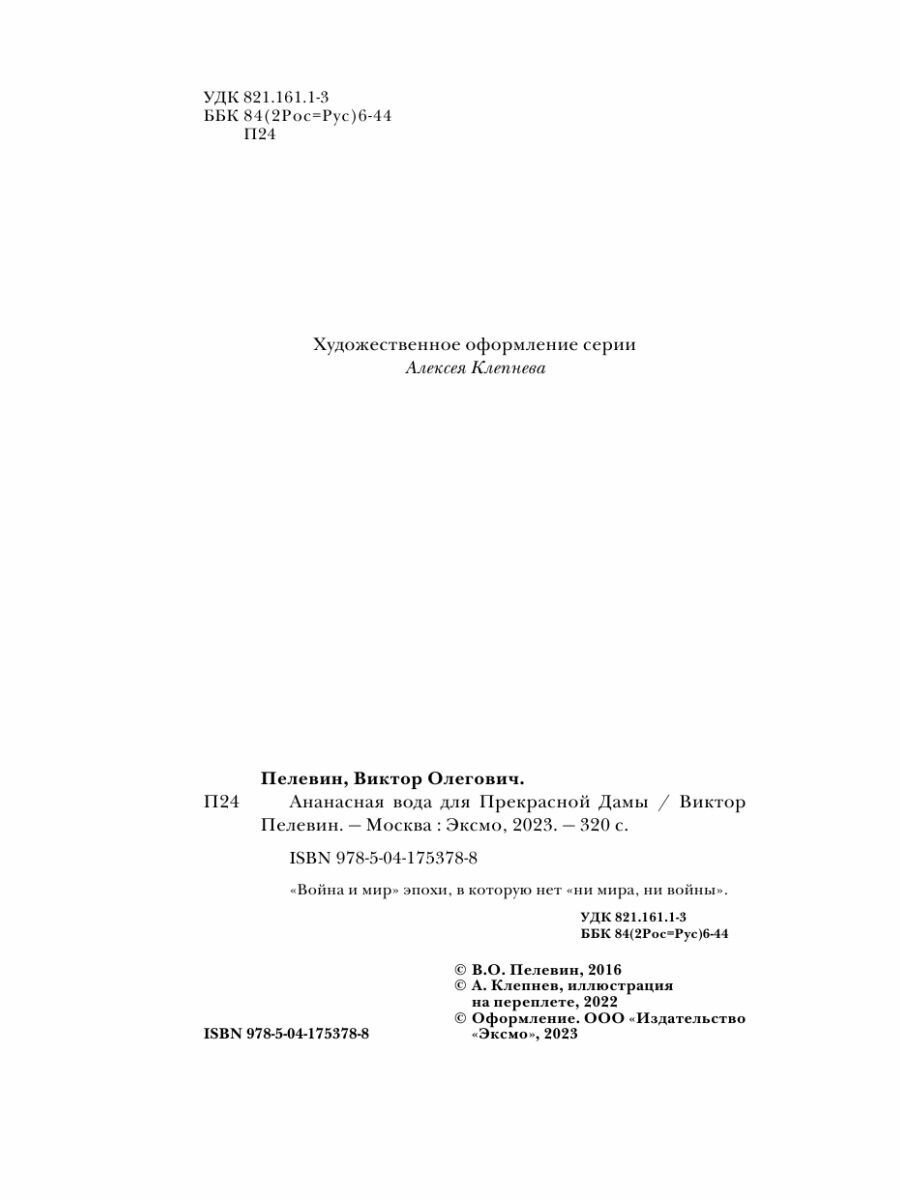 Ананасная вода для Прекрасной Дамы (Пелевин Виктор Олегович); ООО "Издательство "Эксмо", 2023