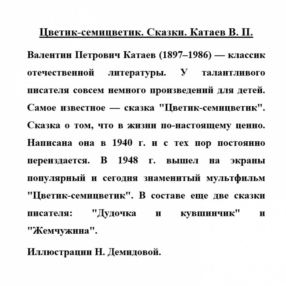 Читательский дневник. Валентин Катаев "Цветик - семицветик"