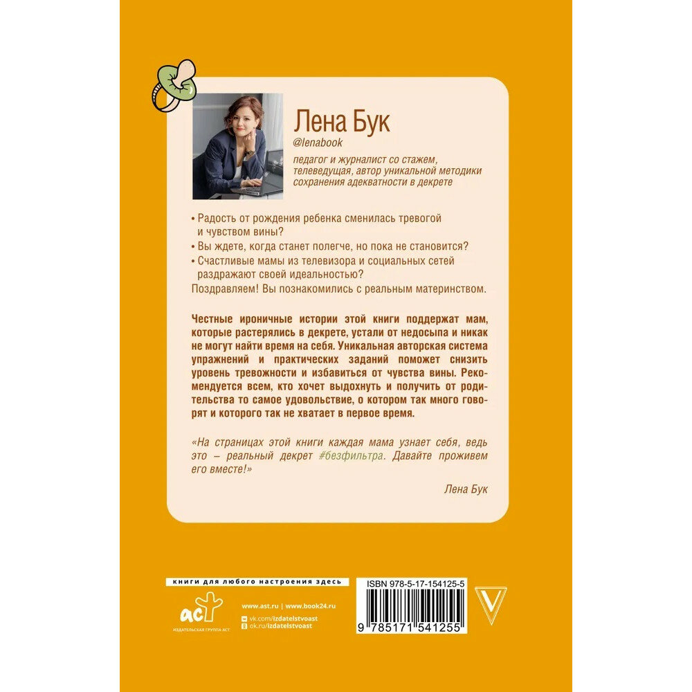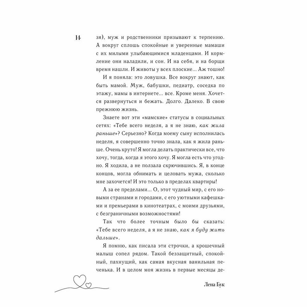 Если бы я купила эту книгу, когда мой ребенок только родился, она бы очень мне помогла в психологическом плане. Очень рекомендую эту книгу неопытным мамам у которых дети еще совсем маленькие. Автор описывает трудности с которыми женщины сталкиваются в декрете и помогает посмотреть на все эти ситуации с другой стороны.