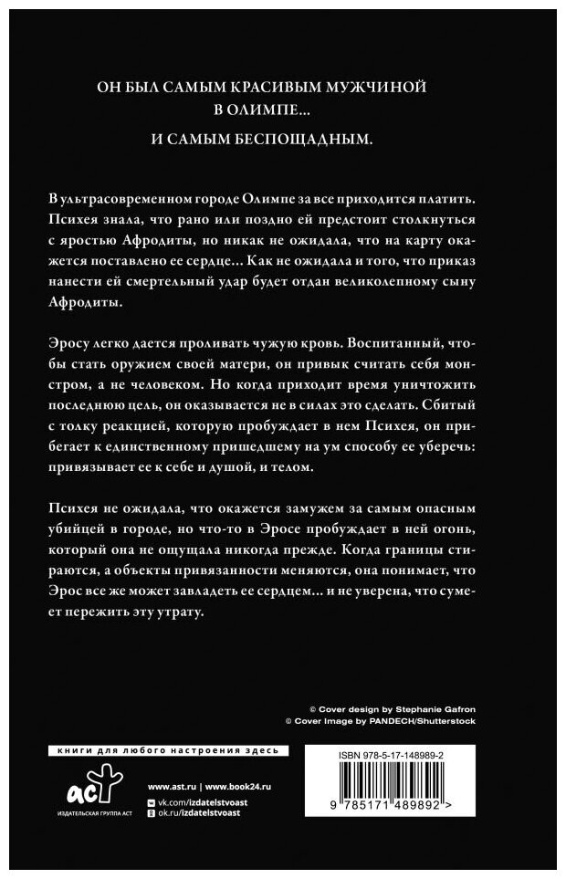 Психея не ожидала, что окажется замужем за самым опасным убийцей в городе, но что-то в Эросе пробуждает в ней огонь, который она не ощущала никогда прежде. Когда границы стираются, а объекты привязанности меняются, она понимает, что Эрос все же может завладеть ее сердцем... и не уверена, что сумеет пережить эту утрату.