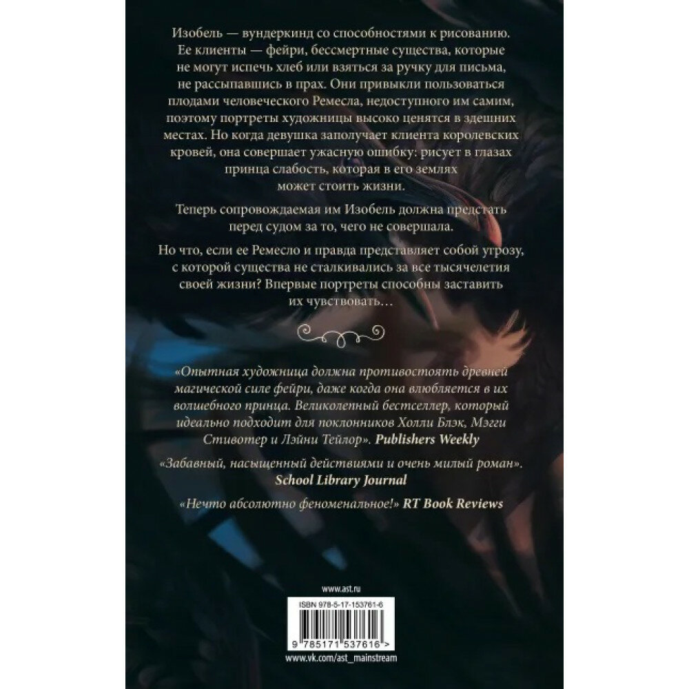 Изобель - вундеркинд со способностями к рисованию. Ее клиенты - фейри, бессмертные существа, которые не могут испечь хлеб или взяться за ручку для письма, не рассыпавшись в прах. Они привыкли пользоваться плодами человеческого Ремесла, недоступного им самим, поэтому портреты художницы высоко ценятся в здешних местах.