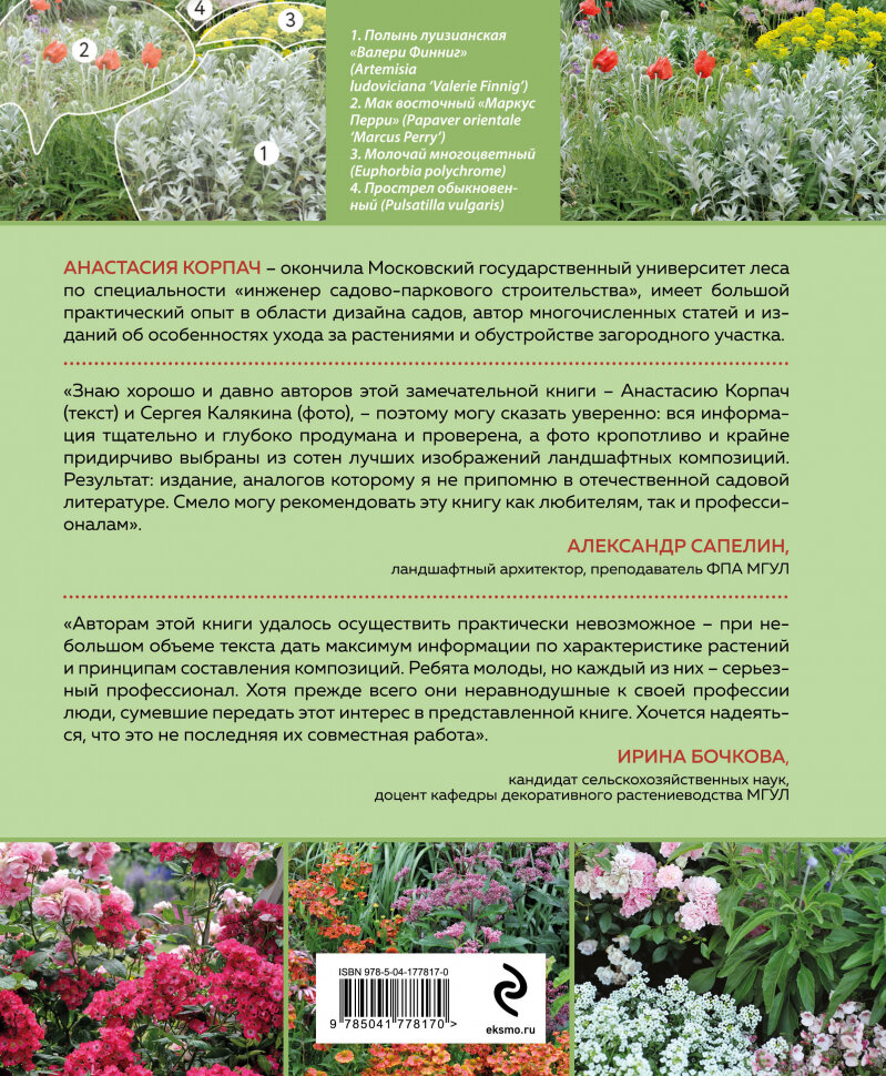 - Эта неповторимая коллекция композиций подойдет как для опытного, так и для начинающего цветовода, ведь в ней подробно разобраны сочетания растений, их основные особенности и характеристики.