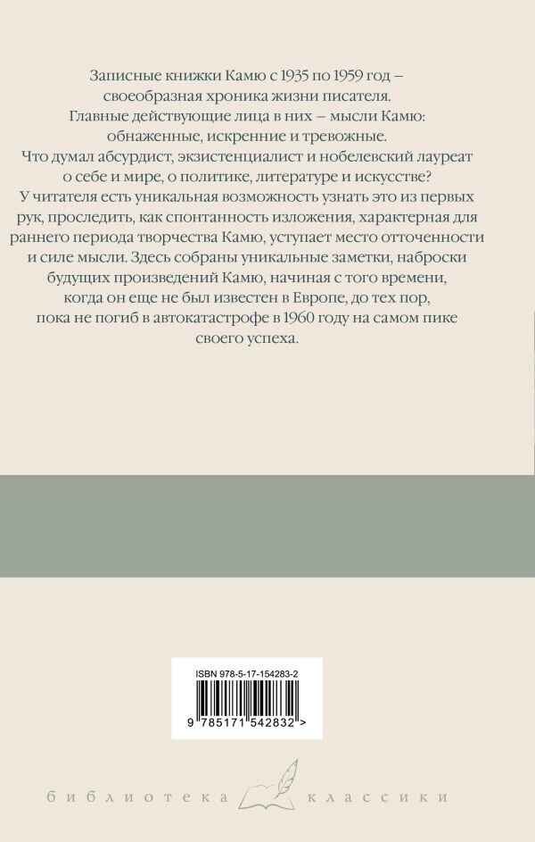 Эта серия не перестает радовать своих читателей не только прекрасным оформлением, но и замечательной подборкой произведений. Эта книга вполне подтверждает сей факт. В записках Камю можно не только прочесть о том, что интересовало автора, узнать о его идеях, мыслях касательно различных сторон жизни, но и понять почему творчество Камю приобрело именно экзистенциальный вектор, а не какой-либо иной