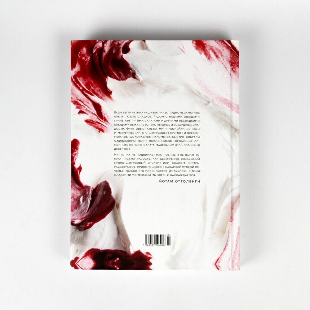 «Многие лакомства из этой книги – результат восторженных воскресных дегустаций. Здесь есть и более старые рецепты, которые восходят к самому началу существования бренда Ottolenghi. Они естественным образом эволюционировали благодаря отзывам посетителей и сотрудников. Многие из них – вклад талантливых кондитеров, работавших с нами в эти годы. И наконец, некоторые рецепты мы создали специально для этой книги, когда нам показалось, что в ней не хватает какого-то ракурса, стиля или просто чего-то, что нам нравится из сладкого». (Йотам Оттоленги, Хелен Го)