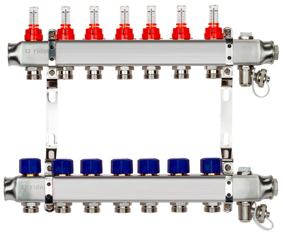 Комплект коллекторов Ридан SSM-7RF set с расходомерами и кронштейнами 7 контуров (088U0957R)