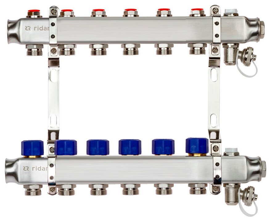 Распределитель состоит из подающего и обратного коллекторов из нержавеющей стали.