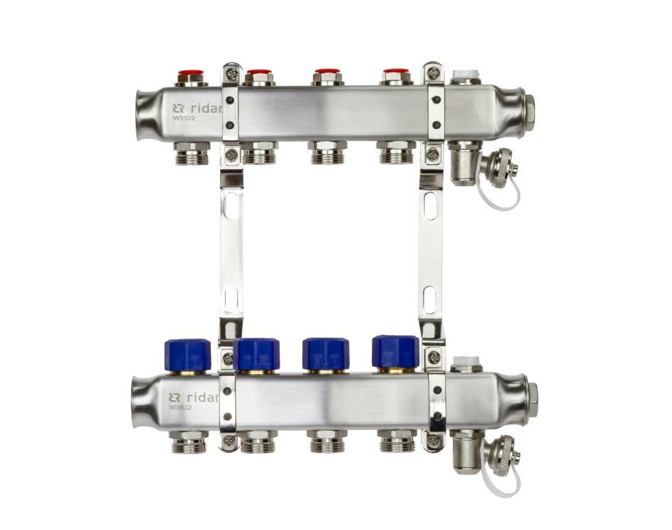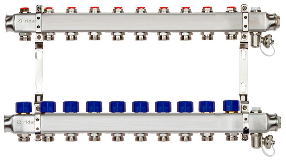 Распределитель состоит из подающего и обратного коллекторов из нержавеющей стали.