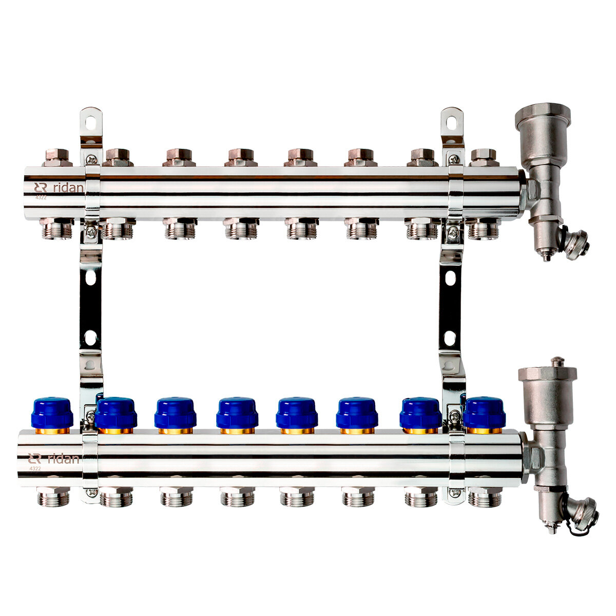 Комплект коллекторов Ридан FHF-8R set с кронштейнами и воздухоотводчиками 8 контуров (088U0708R)