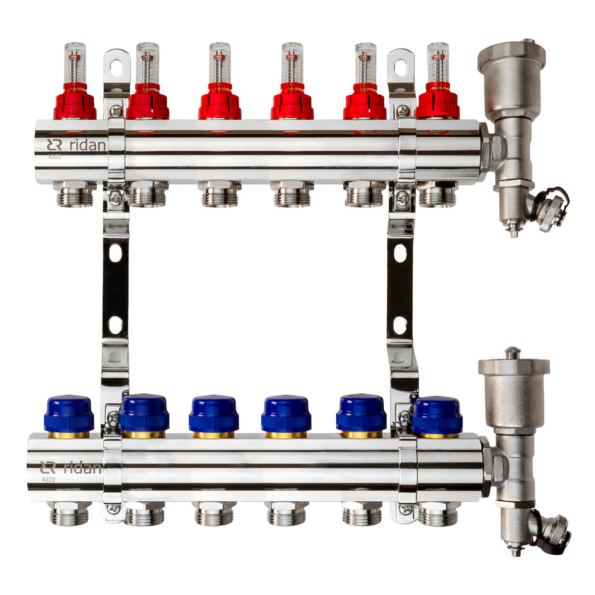 Комплект коллекторов Ридан FHF-6RF set с расходомерами кронштейнами и воздухоотводчиками 6 конт. (088U0726R)