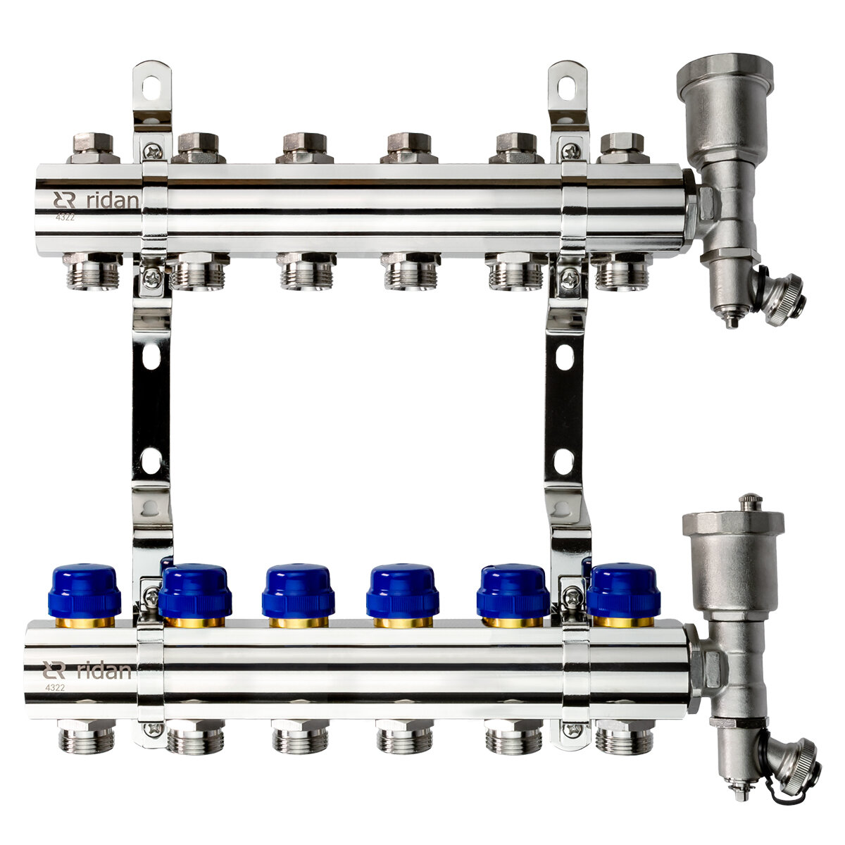 Комплект коллекторов Ридан FHF-6R set с кронштейнами и воздухоотводчиками 6 контуров (088U0706R)
