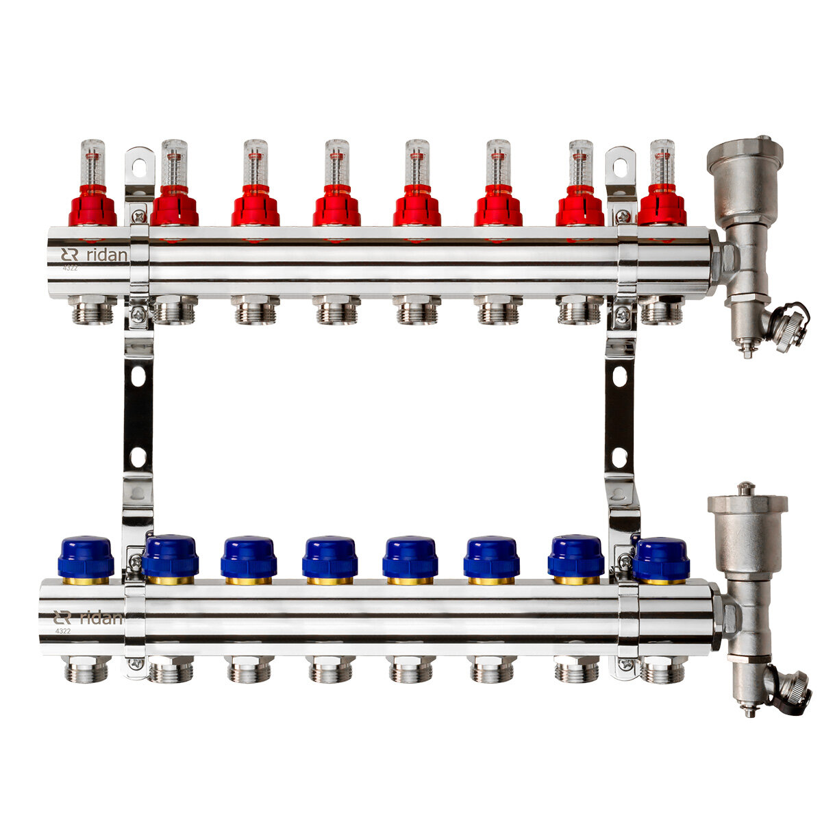 Комплект коллекторов Ридан FHF-8RF set с расходомерами кронштейнами и воздухоотводчиками 8 конт. (088U0728R)