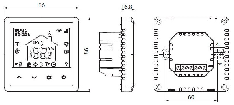Модель: Комнатный термостат Ридан WT-RB 088U0628R, 230 В, программируемый, электронный, встраиваемый