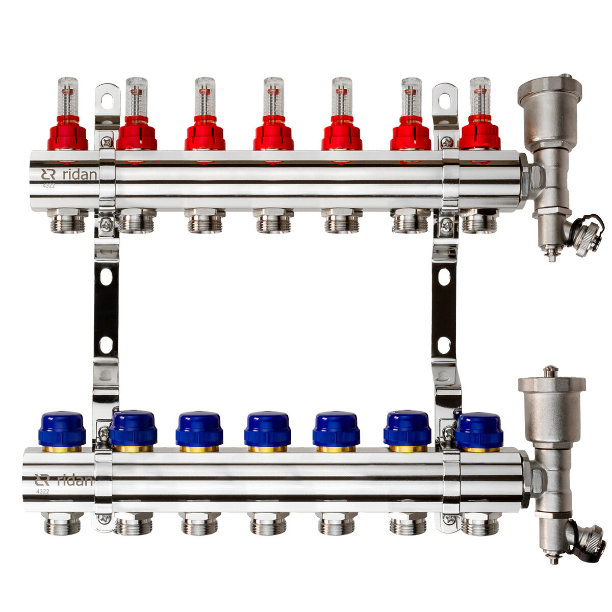 Комплект коллекторов Ридан FHF-7RF set с расходомерами кронштейнами и воздухоотводчиками 7 конт. (088U0727R)