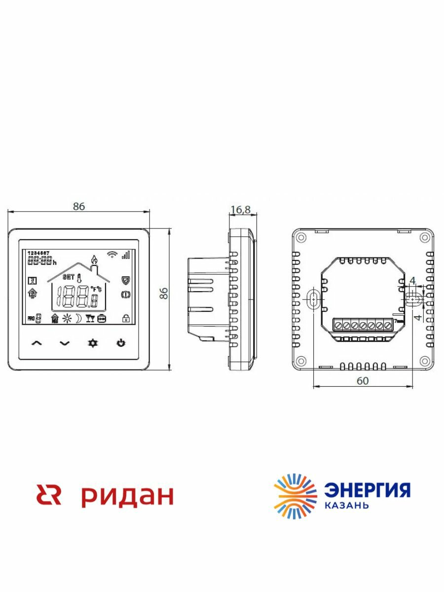 Программируемый электронный комнатный термостат Ридан WT-R 230V встраиваемый (088U0625R)