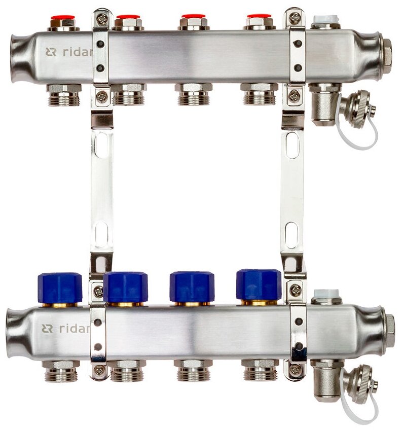 Распределитель состоит из подающего и обратного коллекторов из нержавеющей стали.