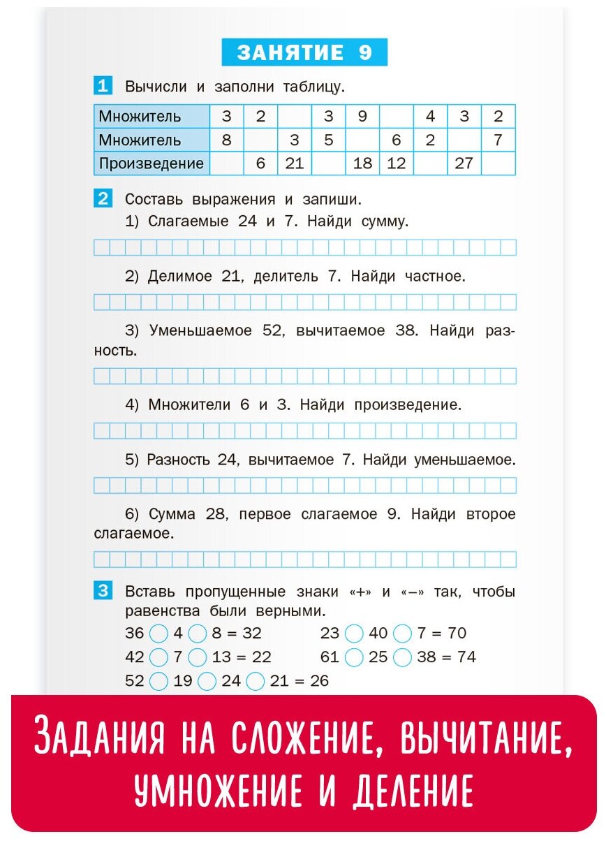 Летние задания по математике за курс 2 класса: рабочая тетрадь