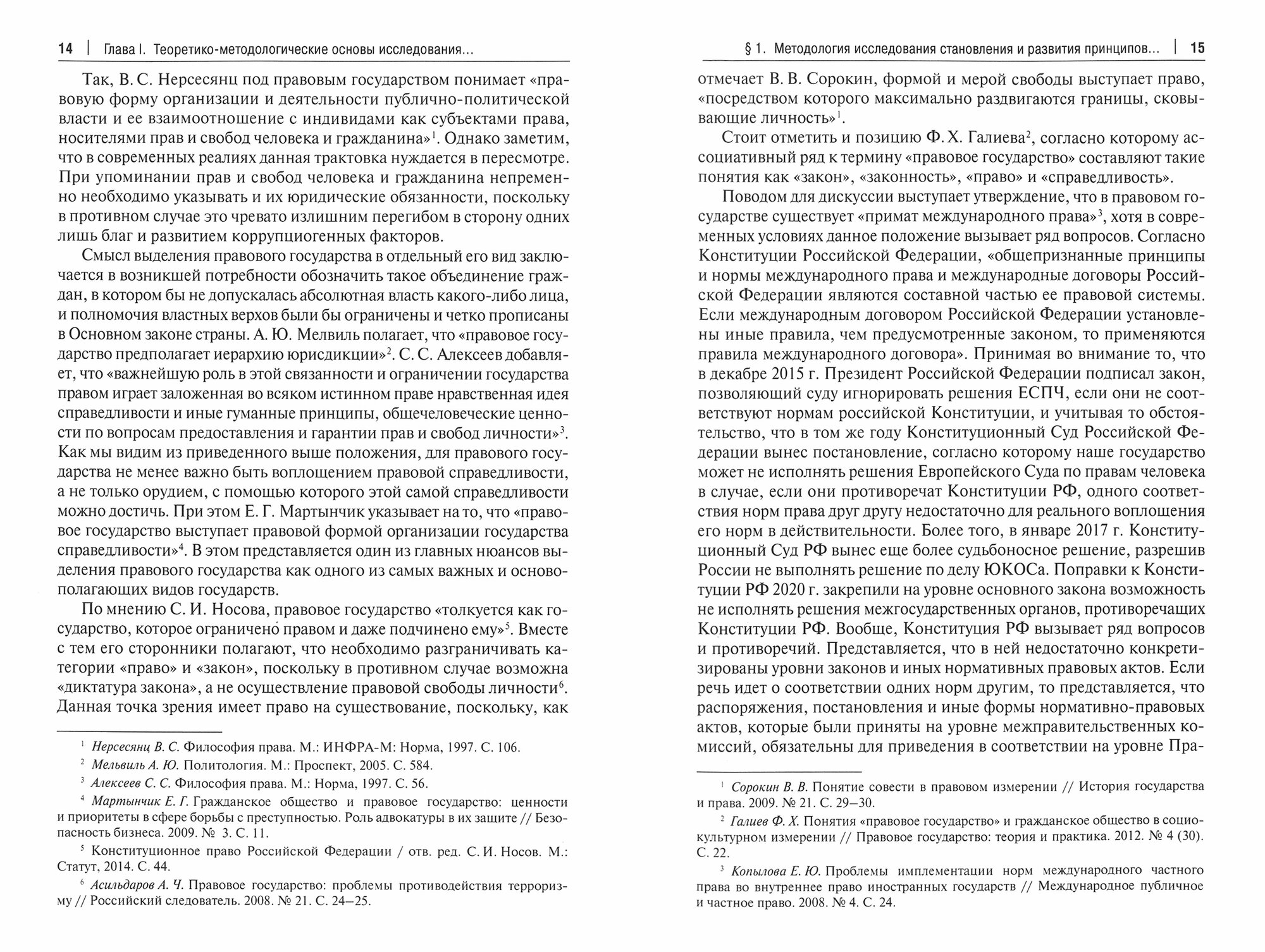 Объектом исследования выступают принципы правового государства в их историческом развитии. На основе нового подхода к определению принципов правового государства выделены стадии развития как самого принципа, так и всей системы принципов правового государства. Выявлена статика и динамика, определены факторы, влияющие на реализацию, аргументирована закономерность реализации, сформулированы признаки и функции принципов правового государства.