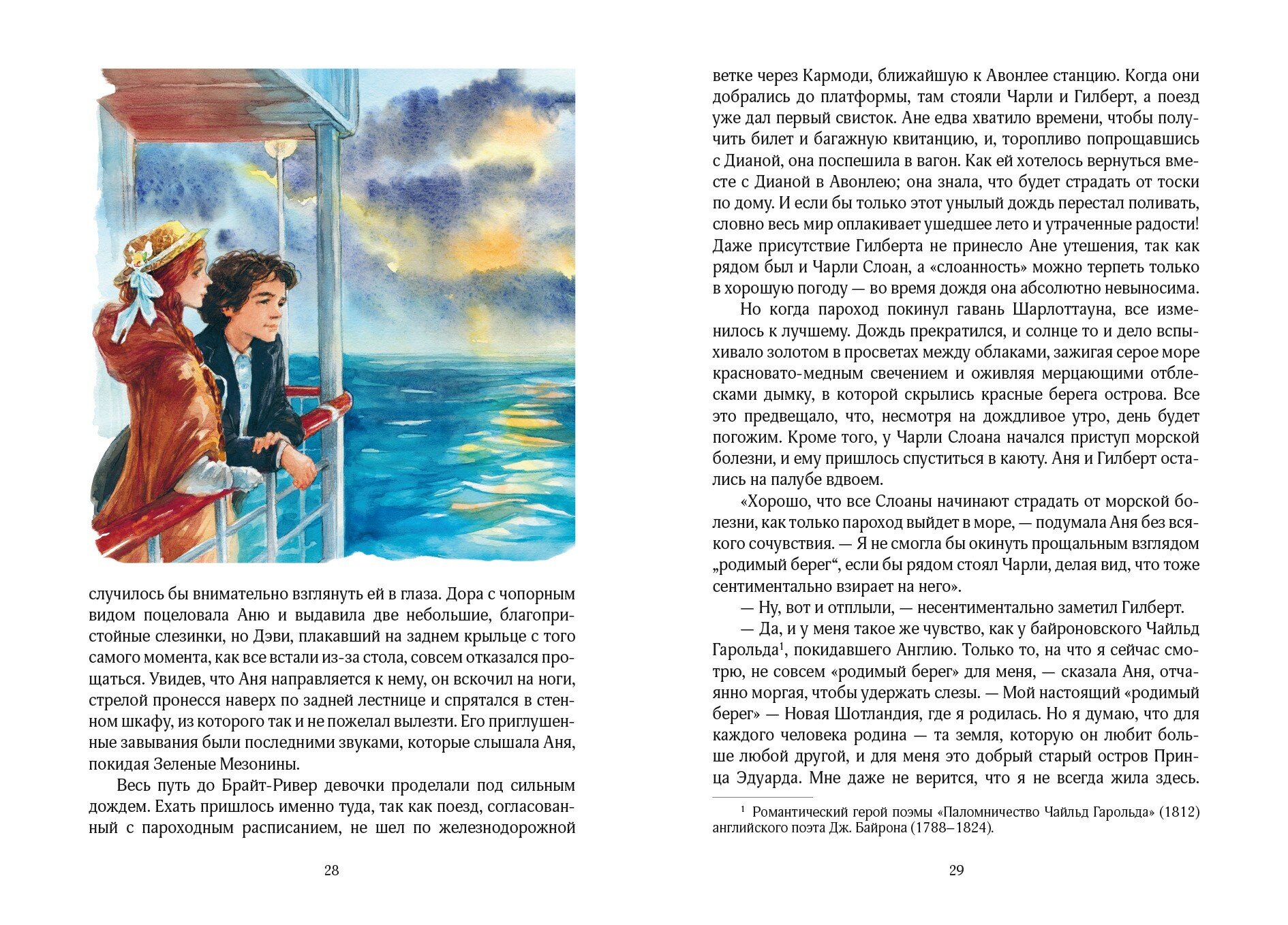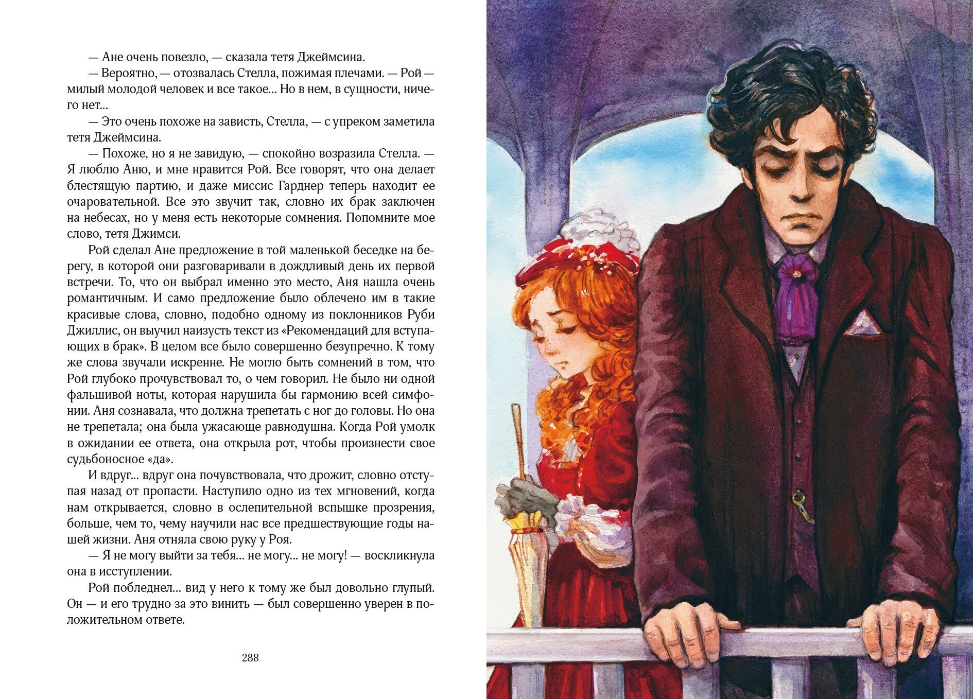 Не каждому писателю хорошо удается взросление обаятельных детских героев. Но Люси Мод Монтгомери и Аня справляются с этой задачей достойно. Конечно, это уже другая Аня,не ребенок, а юная девушка, которая учится, работает, взрослеет, ощущает любовь в сердце. Все очень мило, местами слишком идеально, но за это я и люблю Монтгомери! Уютные истории, полные внутреннего света и силы. Чтение одинаково приятное и для романтичных подростков, и для взрослых, которые способны еще видеть красоту мира. Кажется, я способна. Для всех остальных есть чудесные акварельные иллюстрации, в которых какая-то сказочность сочетается с точно схваченными эмоциями и жестами героев.