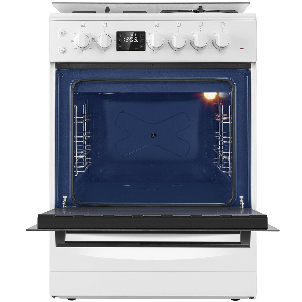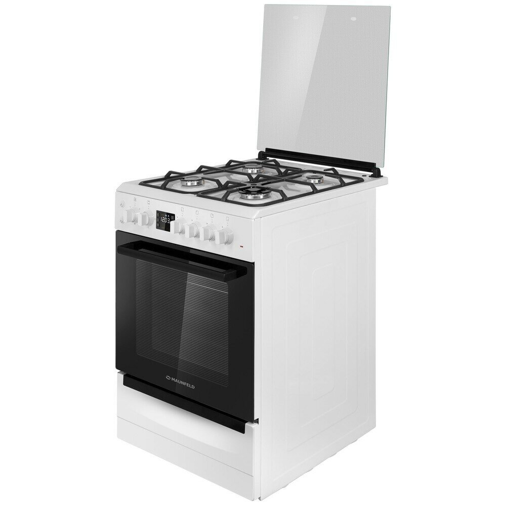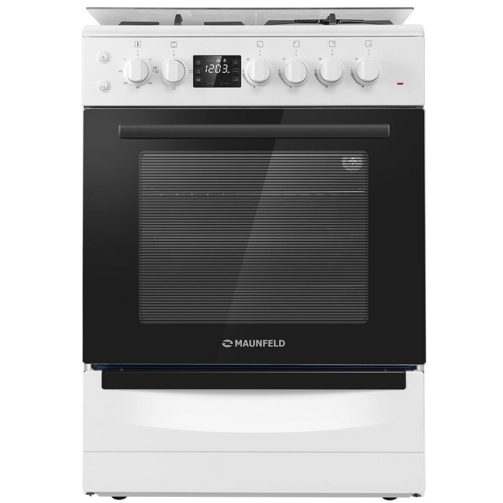 Maunfeld - комбинированная плита с газовой варочной поверхностью и вместительной электрической духовкой станет подходящим решением для большой семьи. Одной из важнейших функций газовой плиты является система газ-контроль. Данная система автоматически прекратит подачу газа если пламя внезапно потухнет. Функция электроподжиг конфорок способна значительно сэкономить ваше время и избавит от необходимости каждый раз при включении пользоваться спичками. Подставка для мелкой посуды на решётку газовой плиты обеспечит дополнительную устойчивость посуды с малым диаметром дна, например кофеварки, турки. Встроенный дисплей упрощает выбор параметров, например, установку таймера, и также отображает полезную информацию, такую как: включение и выключение нагревательного элемента, температуру и время приготовления, блокировку. Стекло в дверце духового шкафа является съёмным, благодаря чему очень удобно очищать дверцу после пользования газовой плитой. Также следует отметить, что стекло является калёным и может выдержать критические температуры. Духовка оснащена функцией гриль, которая идеально подойдёт для приготовления сочной курочки с хрустящей корочкой. Всё, что вам нужно - лишь выбрать режим, остальное духовка сделает за вас. В данной модели предусмотрен звуковой сигнал. Как только истекает заданное таймером время, раздаётся звуковой сигнал, оповещающий вас о готовности блюда. Внутренняя подсветка камеры обеспечивает отличную возможность для наблюдения за процессом приготовления. В нижней части плиты имеется удобный ящик, в котором вы можете хранить всю необходимую посуду.