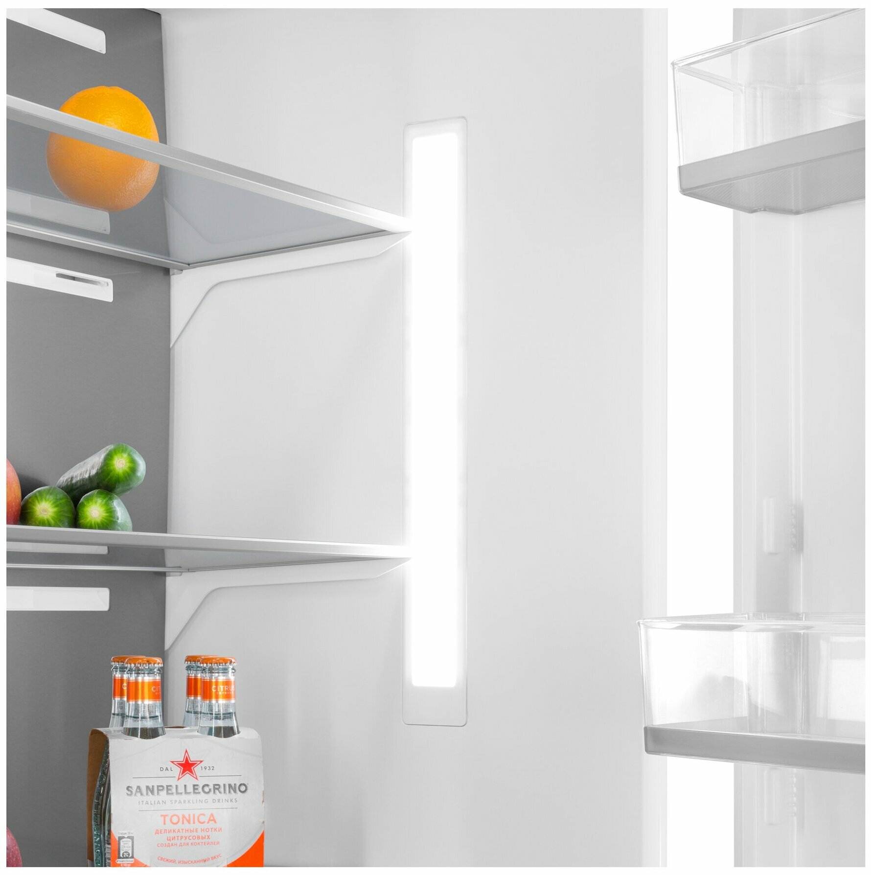 Главное преимущество этого холодильника - революционная технология No Frost, которая обеспечивает равномерное распределение температуры по всему объему холодильника. Это значит, что вы больше не будете беспокоиться о регулярном размораживании морозильной камеры и сохранности продуктов.